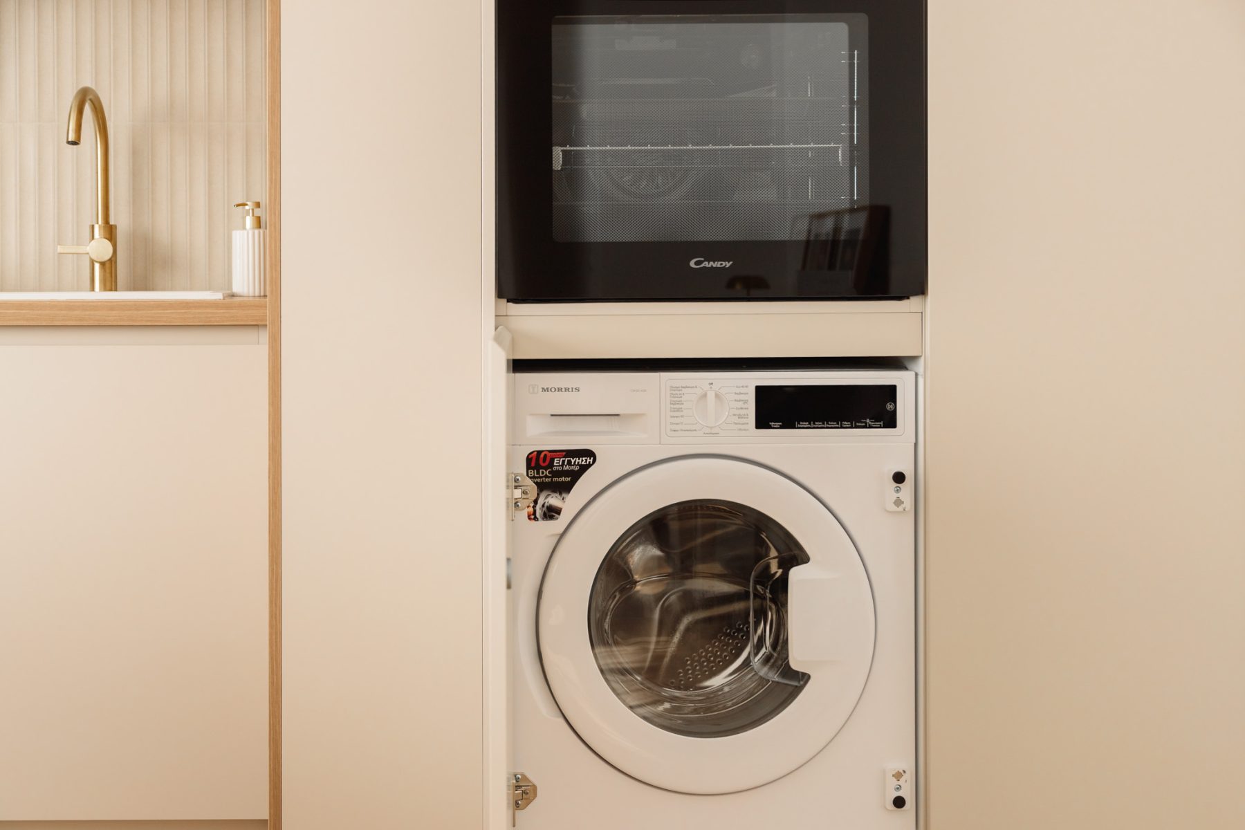 Στο εσωτερικό, οι ζεστοί τόνοι εμπνευσμένοι από τη δεκαετία του 1960, που ταιριάζουν με τον χαρακτήρα του κτιρίου, συναντούν τις κομψές σύγχρονες ανέσεις. Ο χώρος περιλαμβάνει ένα άνετο κρεβάτι queen size, Smart TV, μια πλήρως εξοπλισμένη κουζίνα με μηχανή Nespresso και ένα μπάνιο με ντους ψιλής βροχής, αφράτες λευκές πετσέτες και θερμαινόμενη πετσετοκρεμάστρα.